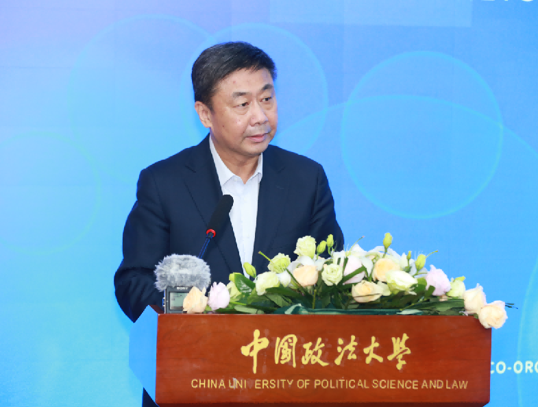 中国法学会副会长兼秘书长张鸣起,我校党委书记胡明,法制日报社党委书记、社长邵炳芳,司法部国际合作局局长杜亚玲,我校全面依法治国研究院教授黄进出席会议并致辞。我校副校长时建中主持开幕式。