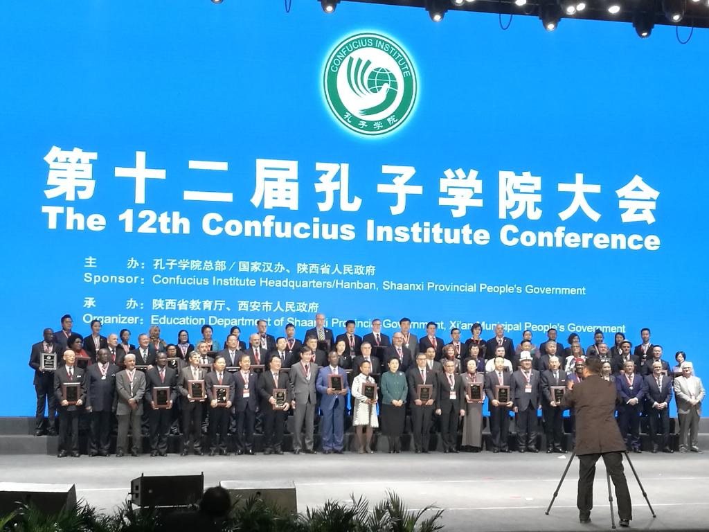 12月12日上午,第12届全球孔子学院大会在西安开幕,国务院副总理、孔子学院总部理事会主席刘延东出席会议,作主旨演讲,并为全球25个先进孔子学院等奖项颁奖。我校共建...