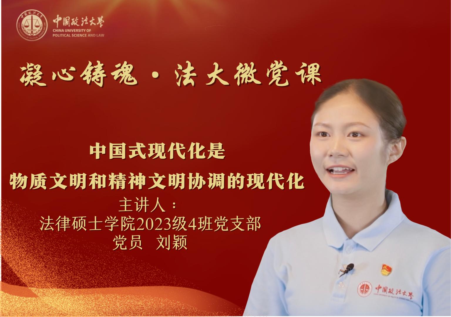 《法大微党课》专题一:中国式现代化。第四讲由法律硕士学院2023级4班党支部党员刘颖...