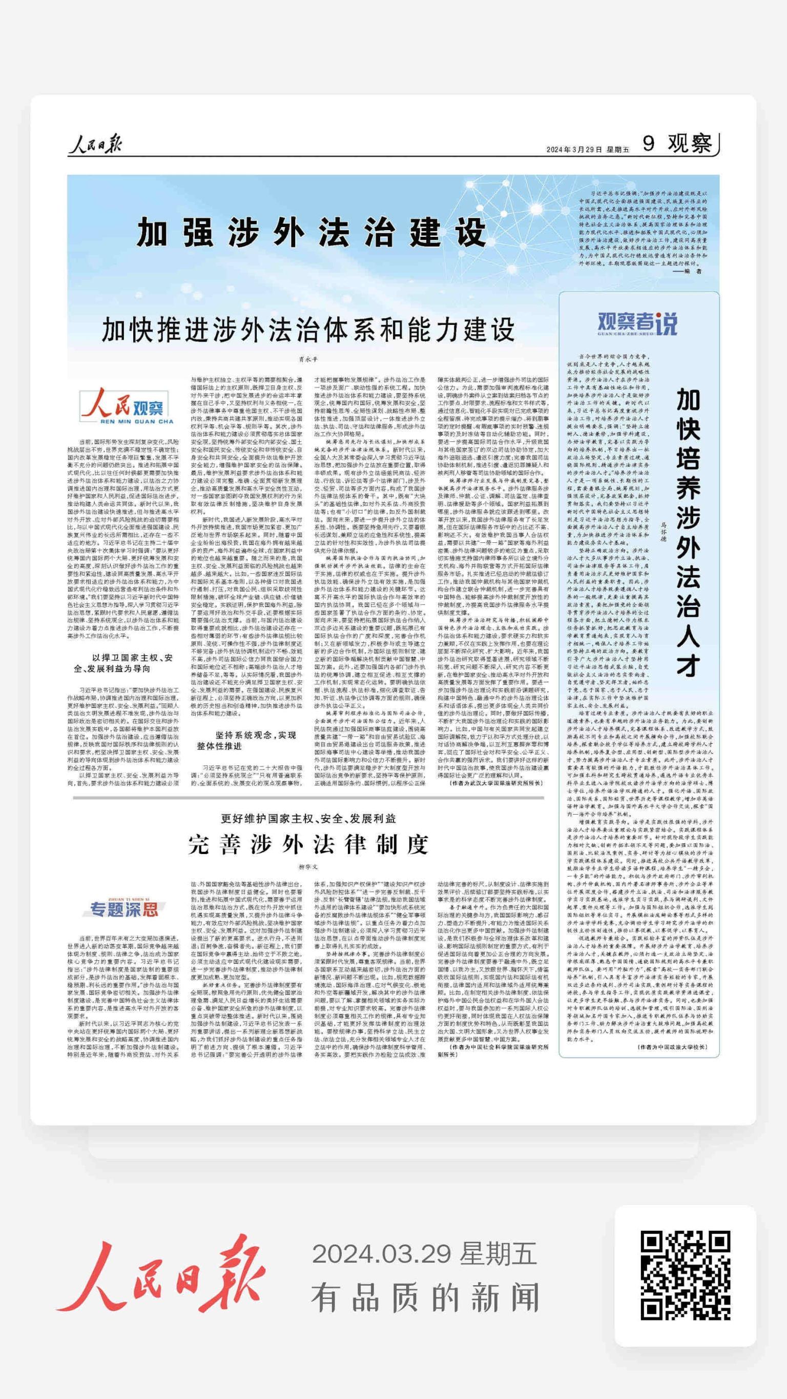 【人民日报】马怀德:加快培养涉外法治人才
