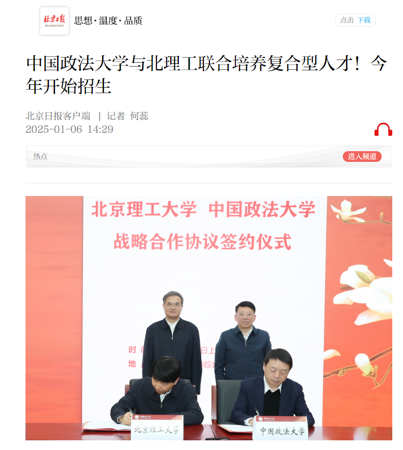 多家主流媒体报道法大与北理工打造“法工融合”新范式 联合培养复合型拔尖...