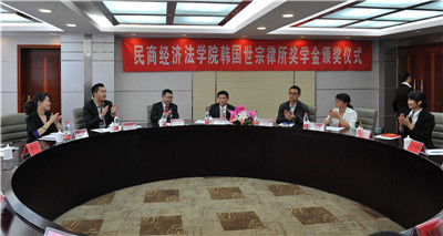 9月16日上午10点,民商经济法学院2011年韩国世宗律所奖学金颁奖仪式在昌平校区国际交流中心第三会议室成功举办。