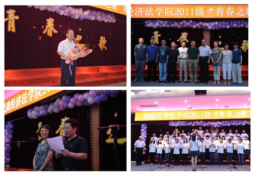 “法大永远向前,向前”、“重厚德、倡明法、求格物、怀致公”……歌声嘹亮,欢声雷动,热烈欢快的情绪在青年学子脸上荡漾。