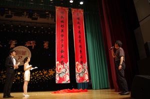 “群英焕彩显学子多姿本色,星耀政管愿吾辈同争上游”。