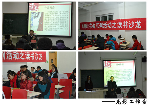 2012年12月5日,由民商经济法学院分团委主办、民商经济法学院学生会承办,新一期以“挑战人性主义的至死艺术”为主题的读书沙龙在端升楼302成功举办。
