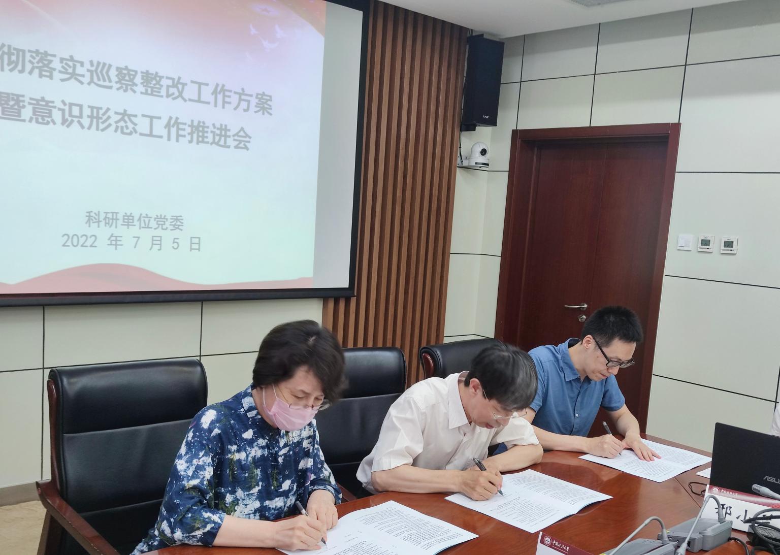 会上,科研单位党委书记、各科研单位行政负责人、党支部书记签署了2022年意识形态工作责任书。同时,对科研单位加强作风建设进行了部署。