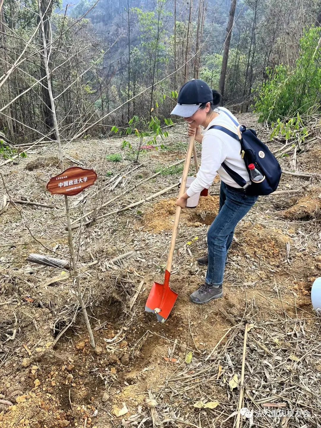 阳春三月,万物复苏。3月11日,植树节前夕,法大重庆分会组织校友参加了“重绿缙云山”活动,孙妍、苏兰等校友代表现场种下了“法大树”,做缙云山的忠实守护者。